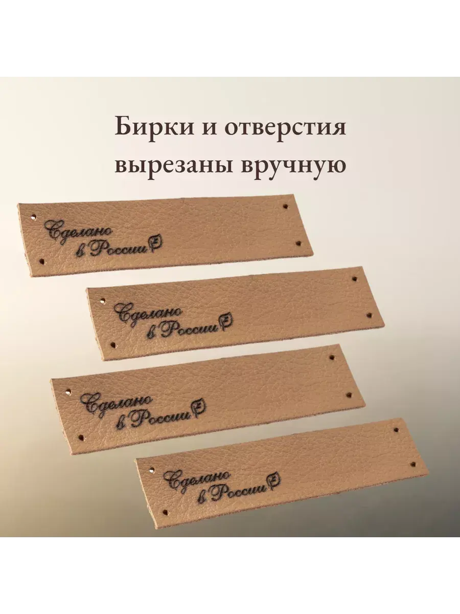 Бирки из натуральной кожи - это не только модный аксессуар, но и гарантия высокого качества вашего рукоделия. Каждая бирка уникальна и выполнена вручную с любовью к деталям. Наша команда профессионалов работает над каждым биркой, чтобы она соответствовала вашим потребностям и подчеркивала индивидуальность вашего творчества.