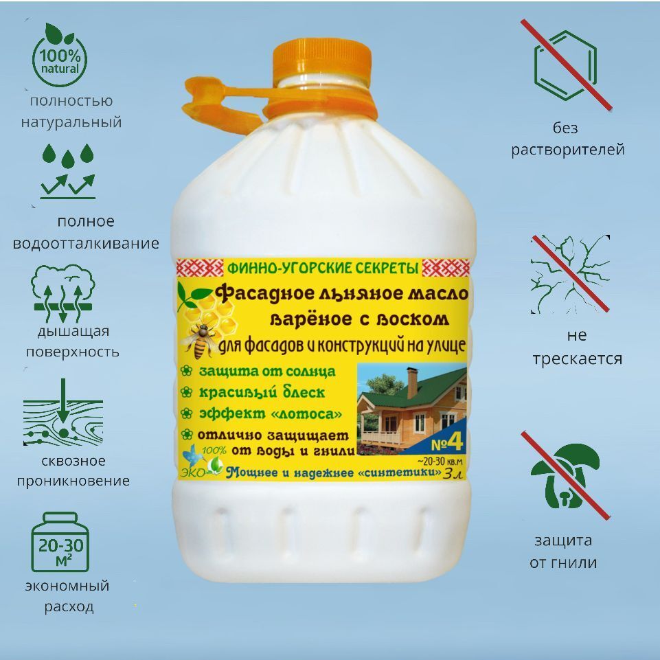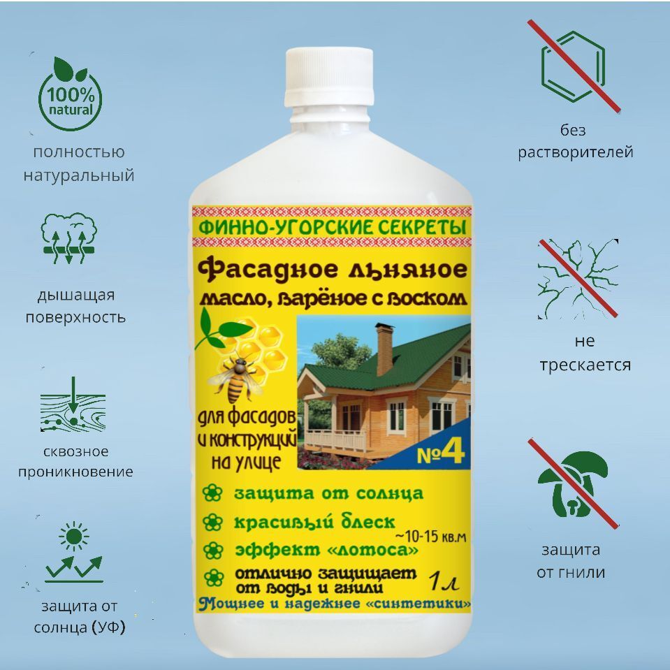 Если вы хотите получить прекрасный и экологически чистый вид фасада, обратите внимание на наше новое предложение - Фасадное льняное масло, вареное с воском №4.
