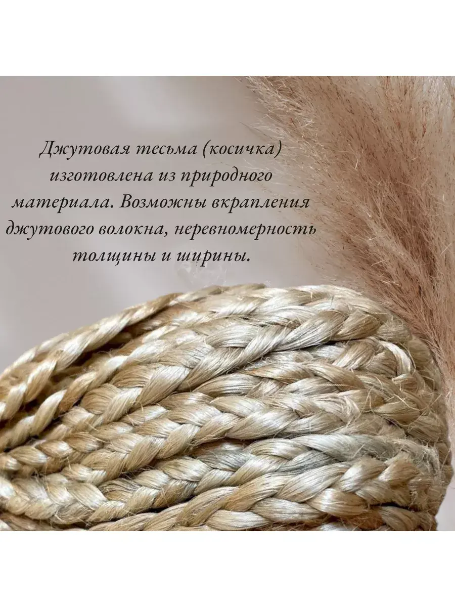 Лента декоративная - это экологически чистый материал, обладающий природными антистатическими свойствами. Джутовая коса обладает уникальными естественными свойствами - отталкивать частицы пыли, низкую водопроницаемость изделий, устойчивость изделий к грязи. Если вы ищете материалы для рукоделия, то тесьма из джута - это отличный выбор. Тесьма идеально подходит для творческих людей и хобби-мастеров, которые занимаются рукоделием, вязанием, шитьем, вышивкой и созданием поделок. С помощью косы джутовой вы сможете создать красивые и уникальные изделия для декорирования дома или в качестве подарка для друзей и близких. Длина пасмы 20 метров, ширина косички 10-12 мм, толщина 5 мм. Косичку из джута можно прошивать, можно приклеивать на любую поверхность. Косичка для вязания отлично сочетается с деревом, лыком и шишками. Джутовая коса для плетения является отличным выбором для творческих личностей и любителей рукоделия. Тесьма декоративная подойдет как для начинающих, так и для опытных мастеров.