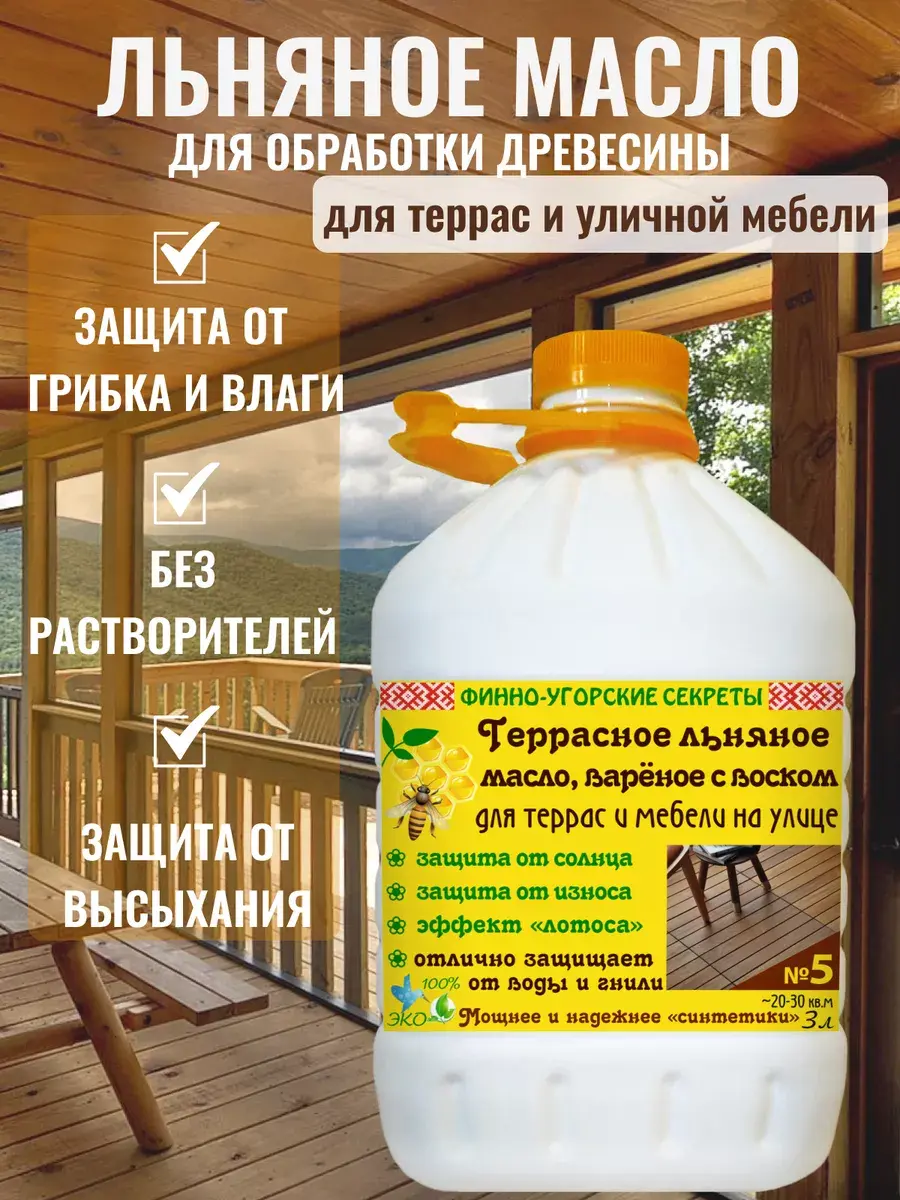 Террасное льняное масло, вареное с воском №5 для защиты неокрашенных поверхностей из дерева на улице (террас, перил, дверей, инструмента и т.д).
