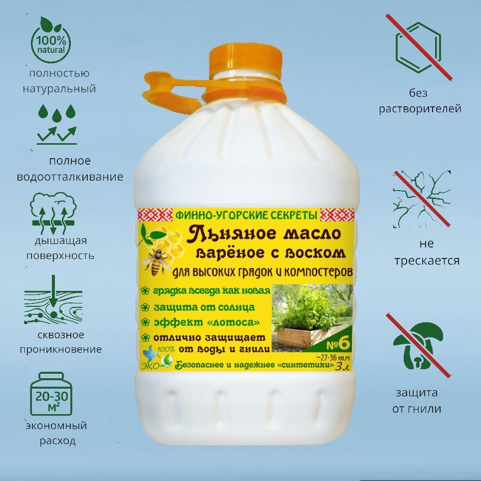 №6 Льняное масло, варёное с воском, для высоких грядок и компостеров.