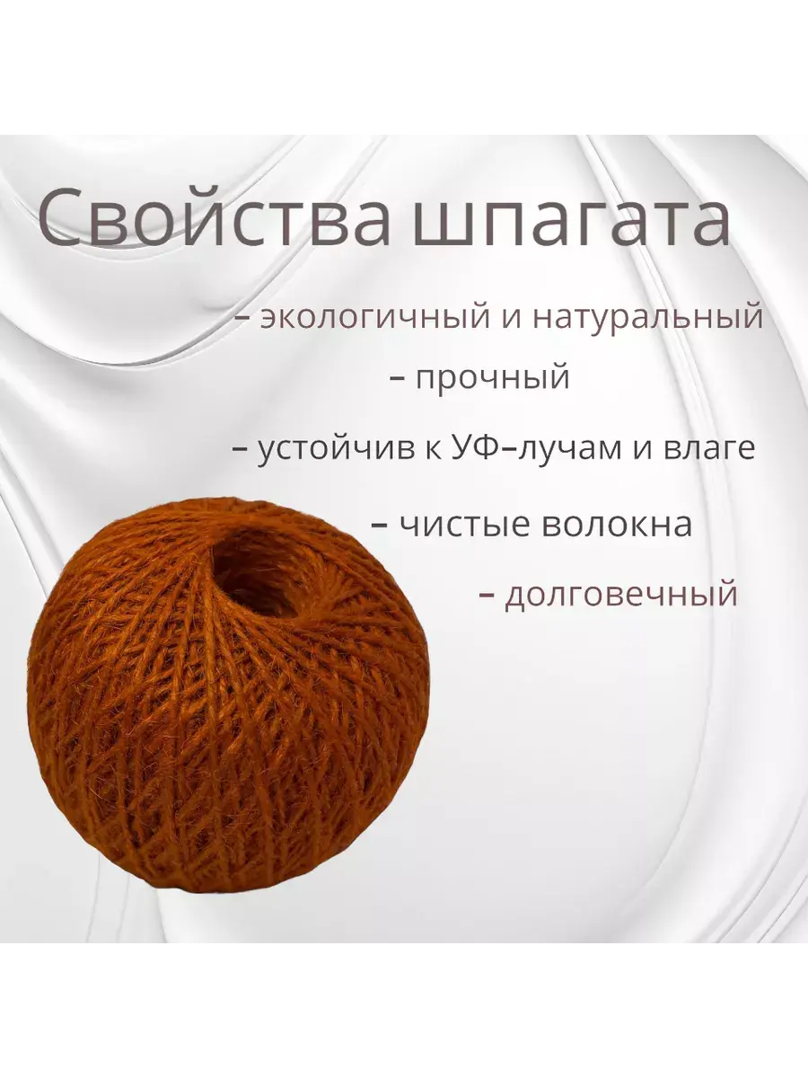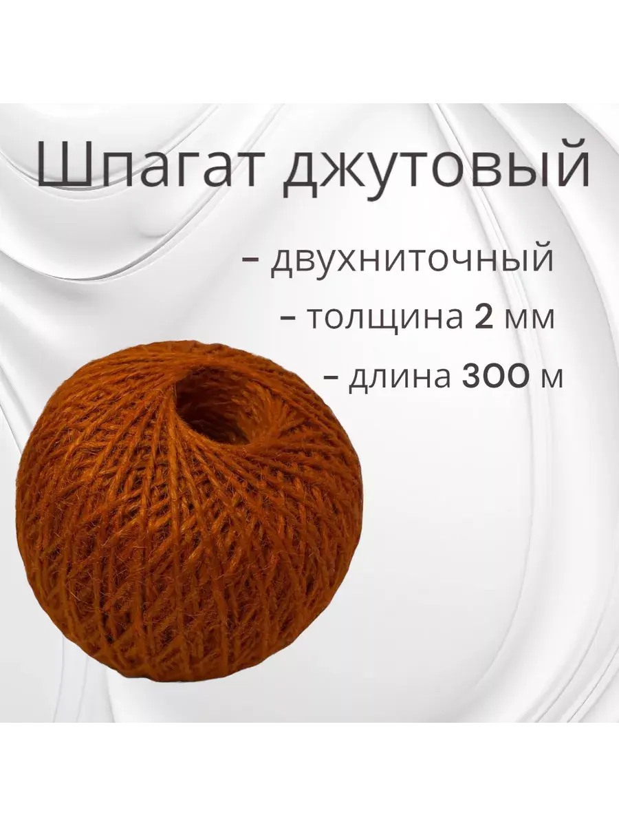 Шпагат джутовый, намотка 300 метров, 2х ниточный (двухниточный), толщина 2 мм 1120 текс ( две нити по 560). Бобина без резкого запаха, равномерная по всей длине. Бобинная пряжа для вязания крючком и плетения сумок, макраме, не ворсится, не пушится и не рвется. Идеально подходит для изготовления ковриков и ковров, кашпо корзин и корзинок, салфеток, гирлянд для фото. Тонкая декоративная двойная нить - отличный материал для изготовления изделий, например его можно использовать для поделок в школу, сад. Своими руками, с помощью джутового мотка получится прекрасная когтеточка кошке. Жгутовые нитки незаменимый помощник в декоре, творчестве, крафтовой упаковке подарков. Лента для торта поможет сделать упаковку Вашего десерта стильной, современной и оригинальной. Ленточка для шариков упаковочная станет помощником в организации праздников. Плотная (1200) хозяйственная бытовая веревка бельевая необходима каждой хозяйке. Строительный такелаж широко применяется в качестве стройматериалов, для ремонта, а еще дачная веревка может стать отличным подарочным клубком для любителей садового, огородного ремесла. Садовый шнур плетеный незаменим для подвязки растений, помидоров, томатов, рассады и кустов на даче, в саду и в огороде, а также для подвязывания цветов дома. Канат крученый, также как и шпагат банковский станет незаменимым помощников для оформления документов и посылок. Джут является биоразлагаемым материалом, моток безопасен для людей и животных. Обладая высокой прочностью, полностью натуральными, экологичными свойствами, джутовый клубок будет полезен Вам во всех сферах жизни!
